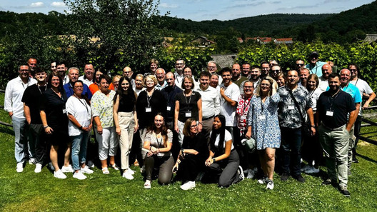 Ein Gewerkschaftstag ist auch immer eine willkommene Gelegenheit für die Delegierten zum persönlichen Austausch untereinander. Dazu gab es viele Gelegenheiten – in den Pausen, unseren Workshops und beim gemeinsamen Essen in der lauen Sommernacht auf dem Dorfplatz des Sonnenhofs. Hier hatte Ingo Wagner im Namen der vbba-Bundesleitung die Delegierten vor dem Essen zu einem Sektempfang eingeladen, um so den Dank und die Wertschätzung für unsere gute gewerkschaftliche Arbeit auszudrücken.