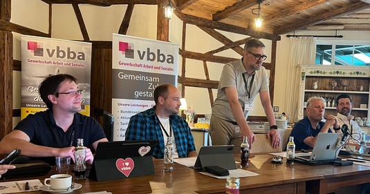 Zudem gab dem LGT einen Input in Sachen Rechtsschutz. Er erklärte, an welche Voraussetzungen die Inanspruchnahme des Rechtsschutzes geknüpft ist und wie der der Prozess verläuft. Er betonte, dass die gewerkschaftliche Rechtsberatung ein zentrales Element der Mitgliedschaft in der vbba sei.