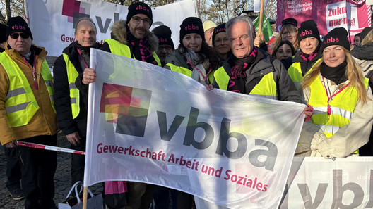 Neben den Berliner vbba-Mitgliedern machten sich auch viele Angehörige der Brandenburger Ortsgruppen auf den Weg nach Potsdam. „Die vbba war zum Auftakt der Tarifrunde mit einer schlagkräftigen Crew vertreten“, lobt Janina Hildebrandt das starke Engagement der Mitglieder.
