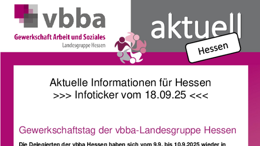 Der +++ Info-Ticker +++ aus vbba-Hessen mit folgendem Thema:
