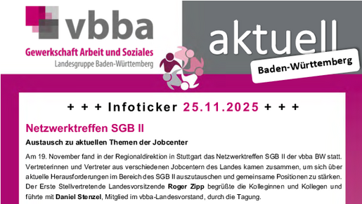 Der + + + Infoticker + + +  der vbba Baden-Württemberg mit folgenden Themen: