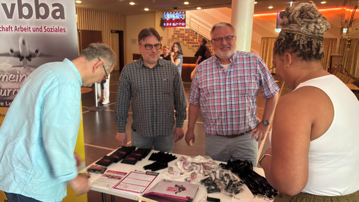 Einmal mehr avanciert der vbba-Stand zum Anziehungspunkt für Beschäftigte. Am Eingang zum Foyer vom Zoopalast, wo die Personalversammlung vom Jobcenter Tempelhof-Schöneberg stattfindet, ist…