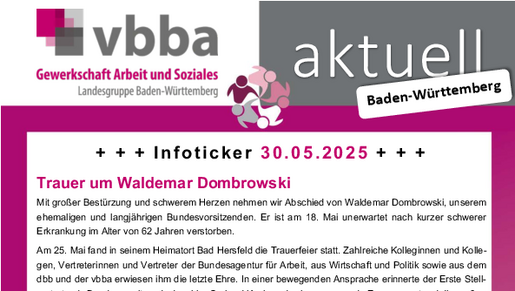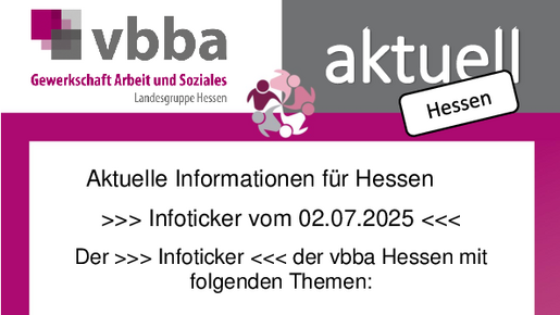 Der + + + Infoticker + + + der vbba Hessen mit folgenden Themen: - Arbeitszeit: Regierungspläne würden Arbeitstage von über 12 Stunden erlauben - Negative Folgen für Gesundheit und…